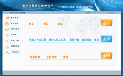 《思沃國際(ji)(ji)結(jie)算模擬(ni)(ni)實訓(xun)系統》從(cong)高校(xiao)國際(ji)(ji)結(jie)算教學的實際(ji)(ji)需(xu)求出發,主要從(cong)匯付、托收(shou)、信用證三種不同類型的結(jie)算方式(shi),本教學平(ping)臺軟件(jian)逼真地模擬(ni)(ni)了出口商、進口商、匯入行(xing)、匯出行(xing)等角色的辦事(shi)流(liu)程(cheng)。