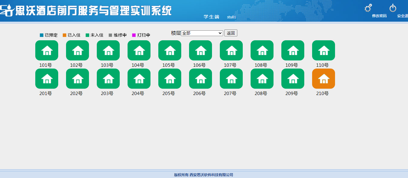 思沃酒店前廳服務(wu)與管(guan)理(li)(li)模(mo)擬實訓(xun)平臺系統以學(xue)生酒店前廳工(gong)作崗位任務(wu)為(wei)基(ji)礎,以案例(li)動(dong)畫結合的(de)模(mo)式(shi)開展(zhan)情(qing)景模(mo)擬實訓(xun),學(xue)生可在該教學(xue)軟件設置的(de)虛擬酒店環境中,完成(cheng)預定、入住(zhu)辦理(li)(li)、續住(zhu)、退房(fang)、換房(fang)、會(hui)(hui)員管(guan)理(li)(li)、故障報修(xiu)、投訴(su)處理(li)(li)、黑名單等相(xiang)關案例(li)任務(wu)的(de)操作。該教學(xue)平臺軟件可以逼真(zhen)的(de)體(ti)驗實際(ji)酒店前廳工(gong)作的(de)過程。本公司為(wei)了更好滿(man)足高(gao)校(xiao)(xiao)的(de)教學(xue)需求(qiu)(qiu),也會(hui)(hui)根據高(gao)校(xiao)(xiao)的(de)需求(qiu)(qiu)提(ti)供酒店管(guan)理(li)(li)實訓(xun)室解決方案,