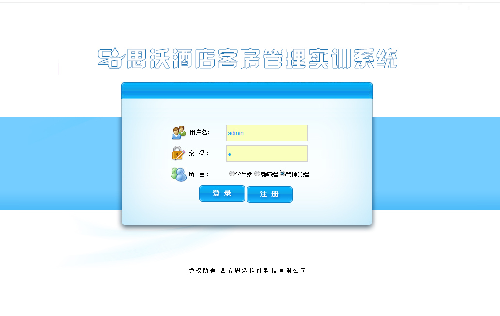 關鍵詞:思沃高校酒(jiu)店(dian)客房管(guan)理教(jiao)(jiao)學實(shi)訓(xun)系統 酒(jiu)店(dian)客房管(guan)理實(shi)訓(xun)教(jiao)(jiao)學軟件 酒(jiu)店(dian)客房管(guan)理實(shi)訓(xun)教(jiao)(jiao)學平(ping)臺
