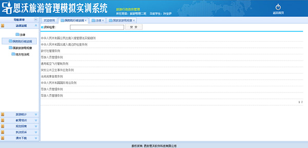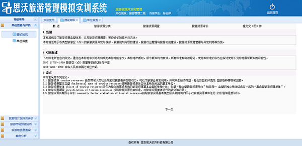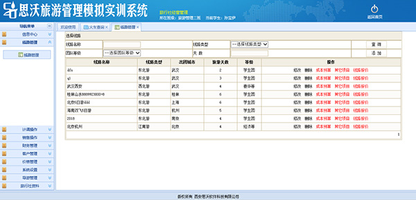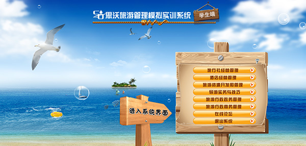 思沃旅(lv)(lv)(lv)(lv)游(you)(you)管(guan)理(li)(li)(li)(li)模(mo)擬實(shi)(shi)訓(xun)系統分為模(mo)擬操(cao)(cao)作(zuo)(zuo)和旅(lv)(lv)(lv)(lv)游(you)(you)知(zhi)識練習(xi)兩大模(mo)塊(kuai),涵(han)蓋旅(lv)(lv)(lv)(lv)行(xing)(xing)社業的(de)(de)(de)(de)(de)分銷、操(cao)(cao)作(zuo)(zuo)、結算、統計分析等各大業務(wu)模(mo)塊(kuai),該實(shi)(shi)訓(xun)教(jiao)學平臺(tai)軟件具(ju)備團隊計劃、旅(lv)(lv)(lv)(lv)游(you)(you)預(yu)訂(ding)、客房(fang)預(yu)訂(ding)、機票(piao)預(yu)訂(ding)、景點門票(piao)預(yu)訂(ding)、團餐預(yu)訂(ding)、車輛預(yu)訂(ding)、收付款(kuan)管(guan)理(li)(li)(li)(li)、供應(ying)商、團隊客戶(hu)、VIP散客管(guan)理(li)(li)(li)(li)等功(gong)能。從(cong)旅(lv)(lv)(lv)(lv)行(xing)(xing)社經營(ying)管(guan)理(li)(li)(li)(li)、酒店經營(ying)管(guan)理(li)(li)(li)(li)、旅(lv)(lv)(lv)(lv)游(you)(you)資(zi)源開發(fa)與(yu)管(guan)理(li)(li)(li)(li)、旅(lv)(lv)(lv)(lv)游(you)(you)行(xing)(xing)政管(guan)理(li)(li)(li)(li)、導游(you)(you)實(shi)(shi)務(wu)與(yu)技巧五個(ge)(ge)(ge)方(fang)面(mian)讓學生參與(yu)旅(lv)(lv)(lv)(lv)游(you)(you)管(guan)理(li)(li)(li)(li)的(de)(de)(de)(de)(de)模(mo)擬操(cao)(cao)作(zuo)(zuo),每個(ge)(ge)(ge)方(fang)面(mian)又細(xi)分為實(shi)(shi)際(ji)流(liu)程(cheng)中(zhong)涉及的(de)(de)(de)(de)(de)每個(ge)(ge)(ge)細(xi)節,因(yin)此,學生可(ke)(ke)以(yi)從(cong)中(zhong)學習(xi)到(dao)旅(lv)(lv)(lv)(lv)游(you)(you)管(guan)理(li)(li)(li)(li)的(de)(de)(de)(de)(de)全面(mian)的(de)(de)(de)(de)(de)操(cao)(cao)作(zuo)(zuo)流(liu)程(cheng)。此外,軟件中(zhong)教(jiao)師(shi)端對(dui)應(ying)的(de)(de)(de)(de)(de)實(shi)(shi)驗設置(zhi)(zhi),讓教(jiao)師(shi)可(ke)(ke)以(yi)方(fang)便(bian)地(di)為學生設置(zhi)(zhi)實(shi)(shi)驗的(de)(de)(de)(de)(de)不同(tong)因(yin)素,同(tong)時,教(jiao)師(shi)還可(ke)(ke)以(yi)查看學生的(de)(de)(de)(de)(de)操(cao)(cao)作(zuo)(zuo)結果,從(cong)而(er)能夠(gou)對(dui)學生的(de)(de)(de)(de)(de)實(shi)(shi)驗進行(xing)(xing)評價。教(jiao)學軟件系統的(de)(de)(de)(de)(de)使用可(ke)(ke)以(yi)提高學生的(de)(de)(de)(de)(de)學習(xi)興趣,同(tong)時也為教(jiao)師(shi)減輕(qing)工作(zuo)(zuo)負(fu)擔。本(ben)公司為了更好滿(man)足高校的(de)(de)(de)(de)(de)教(jiao)學需(xu)求,會根據(ju)高校的(de)(de)(de)(de)(de)需(xu)求提供旅(lv)(lv)(lv)(lv)游(you)(you)管(guan)理(li)(li)(li)(li)實(shi)(shi)訓(xun)室解決方(fang)案。