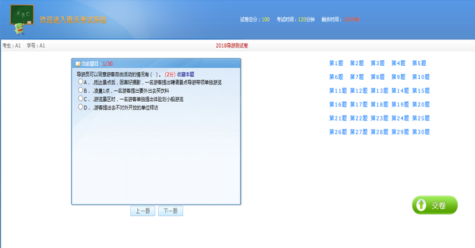 支持(chi)整版作答(da)(題(ti)目全(quan)屏顯(xian)示)、單(dan)題(ti)作答(da)(一屏一題(ti)顯(xian)示)二種考試模(mo)式(shi)。