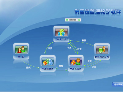 系(xi)統是通過(guo)對共(gong)用(yong)數據的(de)(de)采集,為學(xue)(xue)(xue)校的(de)(de)物(wu)流教(jiao)(jiao)學(xue)(xue)(xue)信息提(ti)供基礎(chu)支(zhi)撐信息,滿足(zu)學(xue)(xue)(xue)校對供應鏈對物(wu)流的(de)(de)教(jiao)(jiao)學(xue)(xue)(xue)需求(qiu),支(zhi)撐物(wu)流教(jiao)(jiao)學(xue)(xue)(xue)中各種功(gong)能的(de)(de)實現;同時通過(guo)共(gong)享信息支(zhi)撐學(xue)(xue)(xue)生(sheng)在實驗(yan)室(shi)、在家(jia)、在任何地點的(de)(de)學(xue)(xue)(xue)習(xi)。系(xi)統除了強大的(de)(de)原材(cai)料供應商(shang)-供應商(shang)-經銷商(shang)-物(wu)流公司-客戶的(de)(de)處理(li)(li)能力(li)以(yi)外,還具有后臺的(de)(de)班級(ji)管(guan)(guan)理(li)(li)、學(xue)(xue)(xue)生(sheng)管(guan)(guan)理(li)(li)、知(zhi)識庫管(guan)(guan)理(li)(li)、題(ti)庫管(guan)(guan)理(li)(li)、考試(shi)管(guan)(guan)理(li)(li)、試(shi)卷管(guan)(guan)、師(shi)生(sheng)交流管(guan)(guan)理(li)(li)、經營分析等功(gong)能,使(shi)教(jiao)(jiao)師(shi)利用(yong)此系(xi)統輕松進(jin)行知(zhi)識傳(chuan)授、考試(shi)、師(shi)生(sheng)知(zhi)識溝通。
